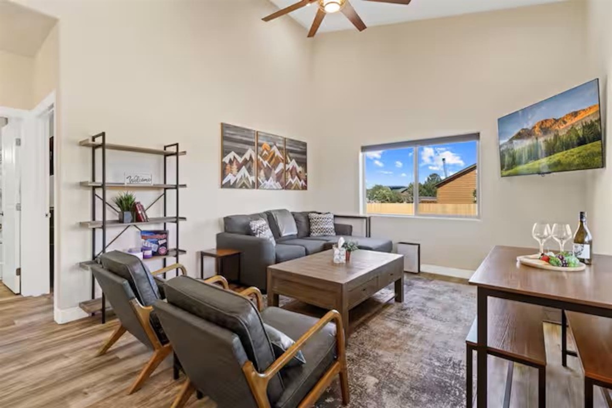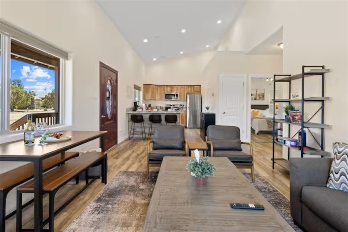 2 Bedrooms • 2 Bathrooms (1 full, 1 half) 2 Baths (1 full, 1 half) • Sleeps 3-4Enjoy an upscale & affordable experience at this stylish & centrally-located cabin in Heber-Overgaard. Cabin’s cozy size is ideal for 2-4 guests. Bring your furry friends along with only an additional small fee per pet. They will love the fully fenced back yard for off leash play! Cabin has been thoughtfully designed for that perfect blend of updated interior design, functional amenities, comfort, privacy, and entertainment! Come enjoy the cooler weather, local lakes, trails & small town vibes!
