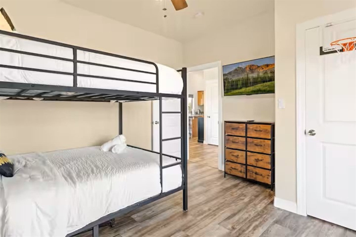 • Bedroom 2: Queen over Queen bunk beds
