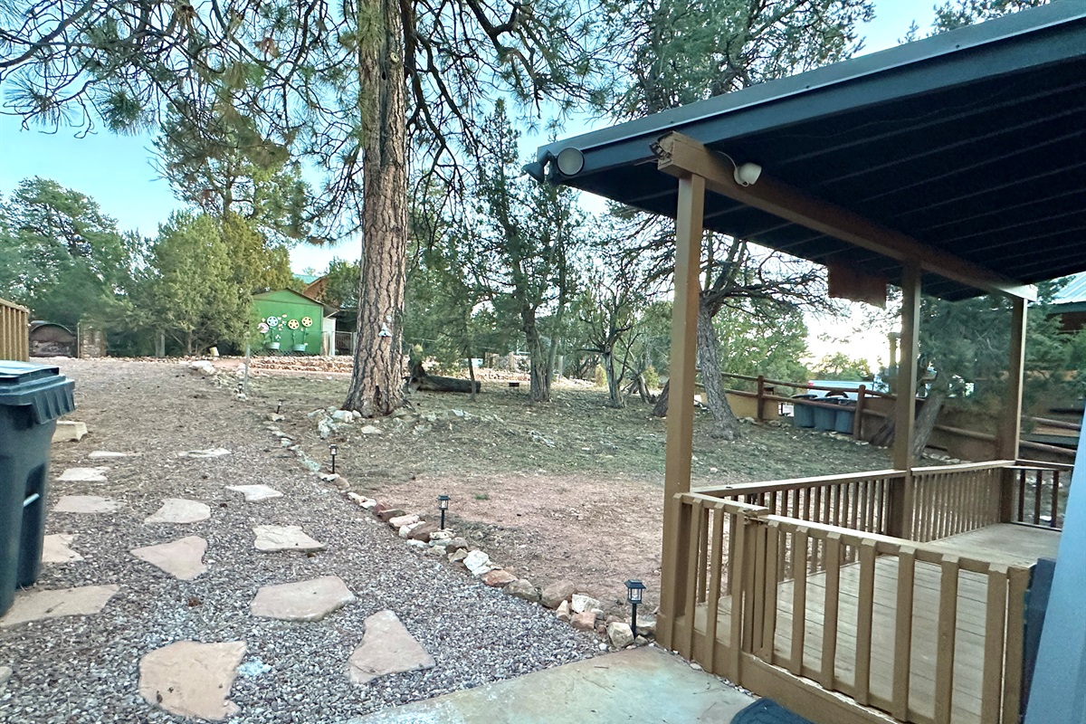 The back yard is fully fenced, providing a great place to allow pets to relax off leash.