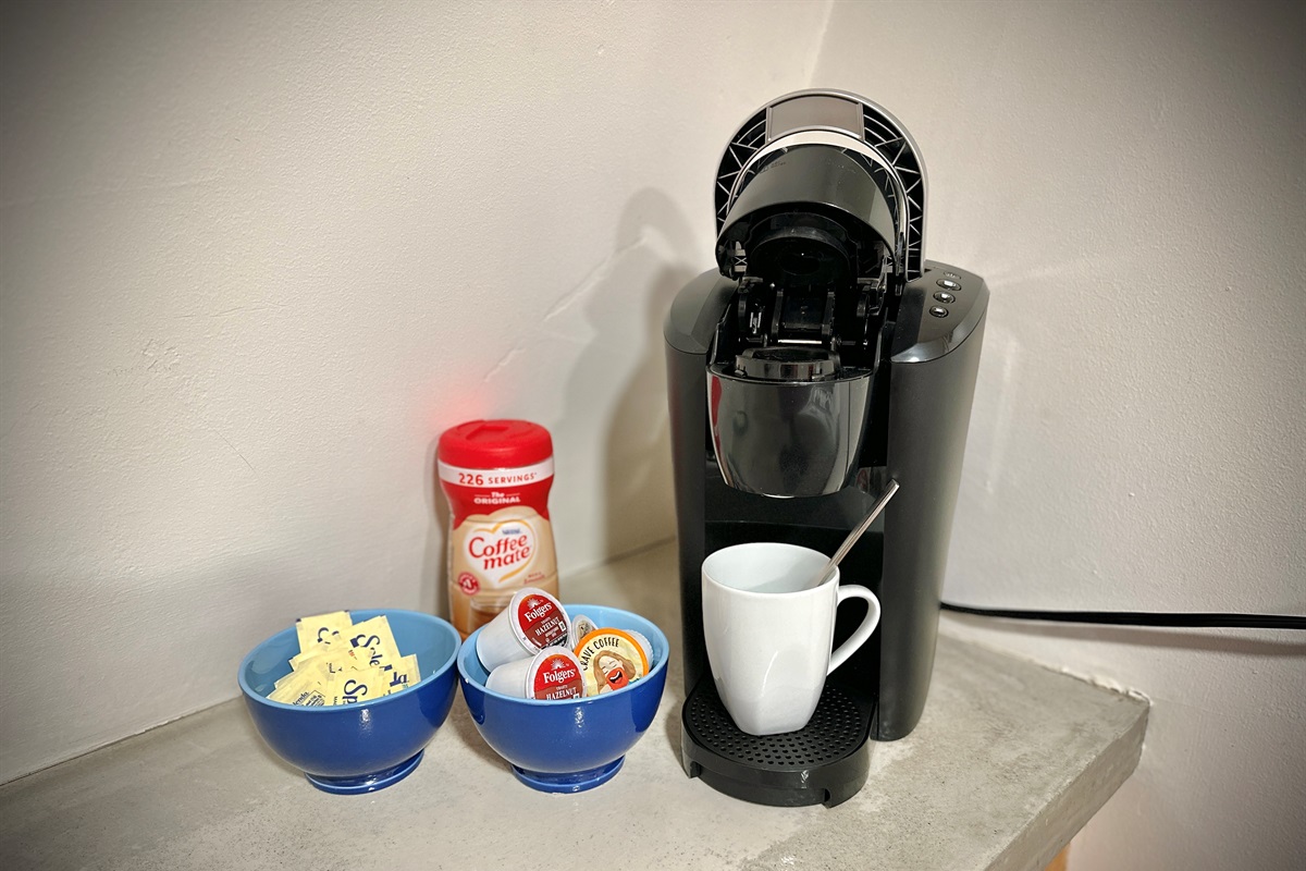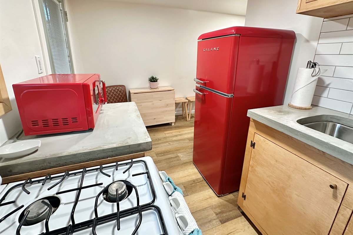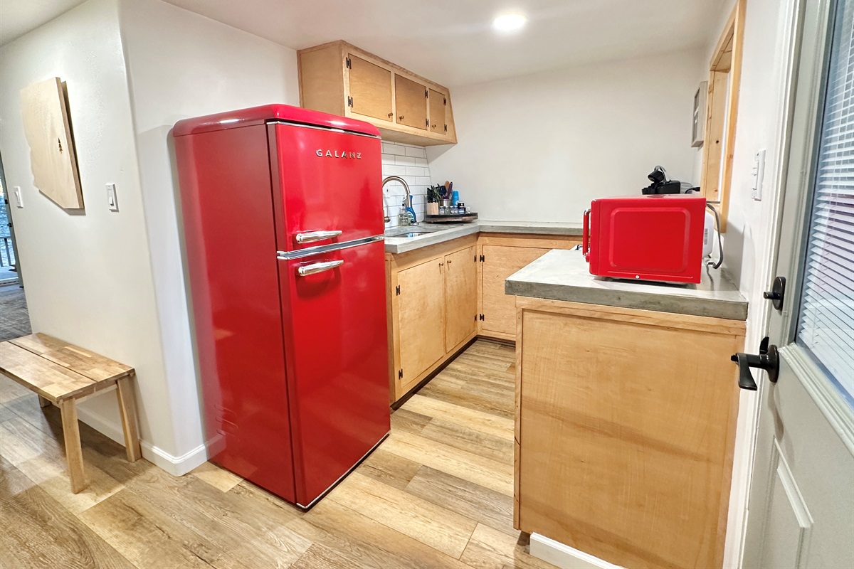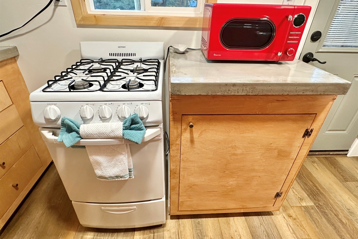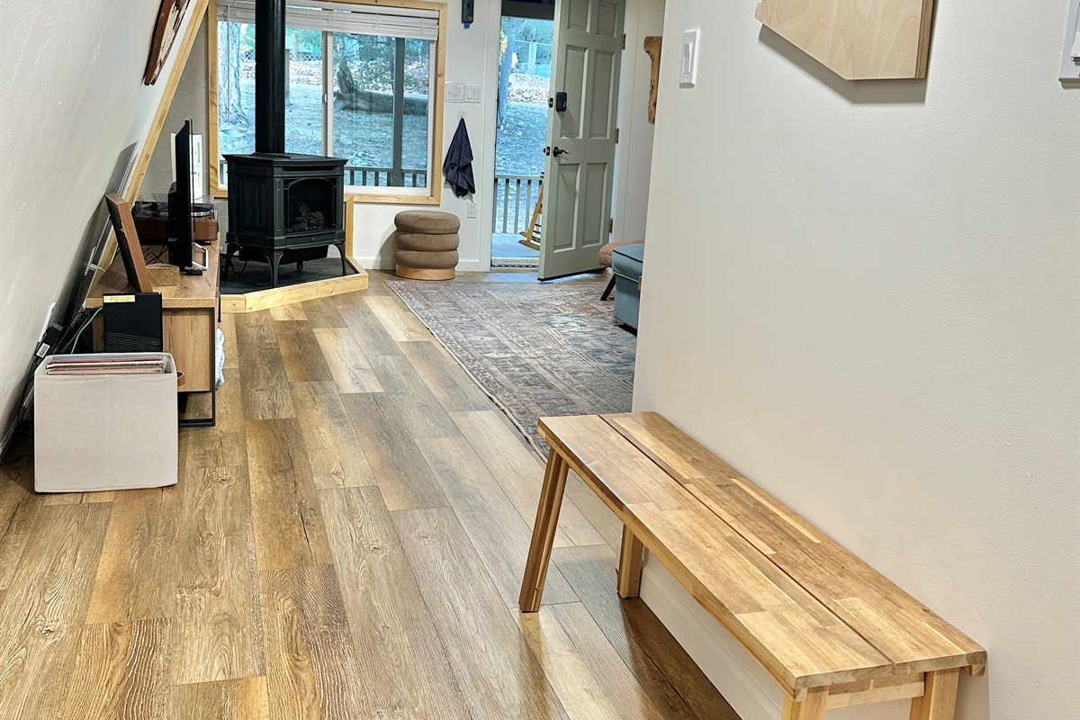 1st level: you will find a comfortable living area with tv & gas fireplace, record player, bathroom with walk in shower, quaint kitchen equipped for making meals, and 2 porches for outdoor relaxation.