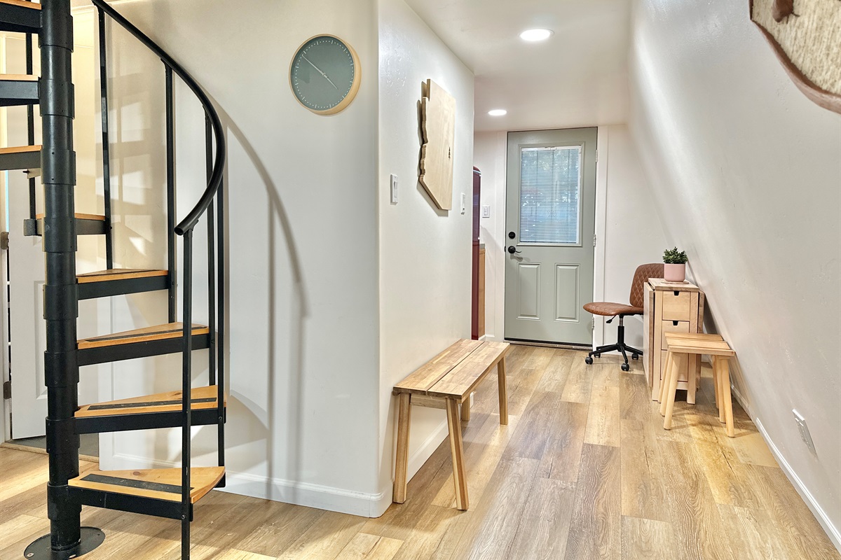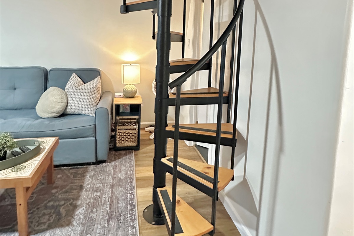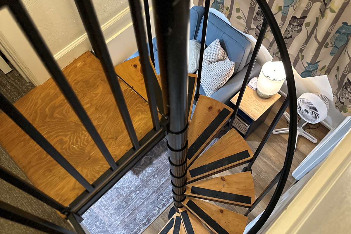 Unique spiral staircase (18 inches wide) leads to the 2nd level.