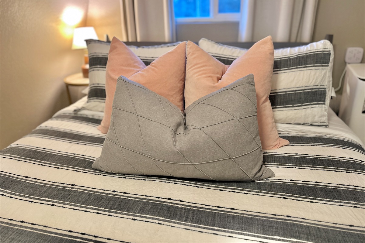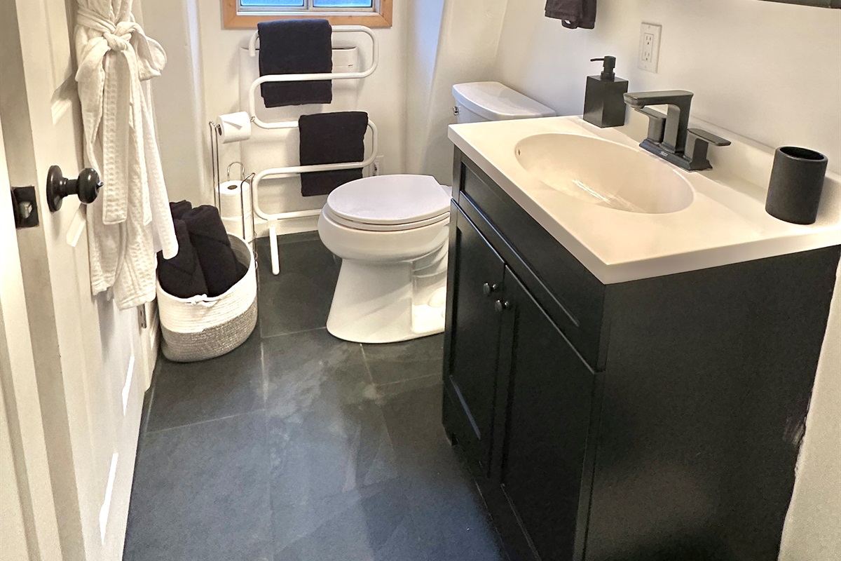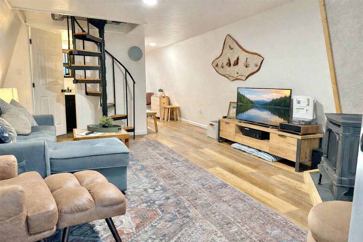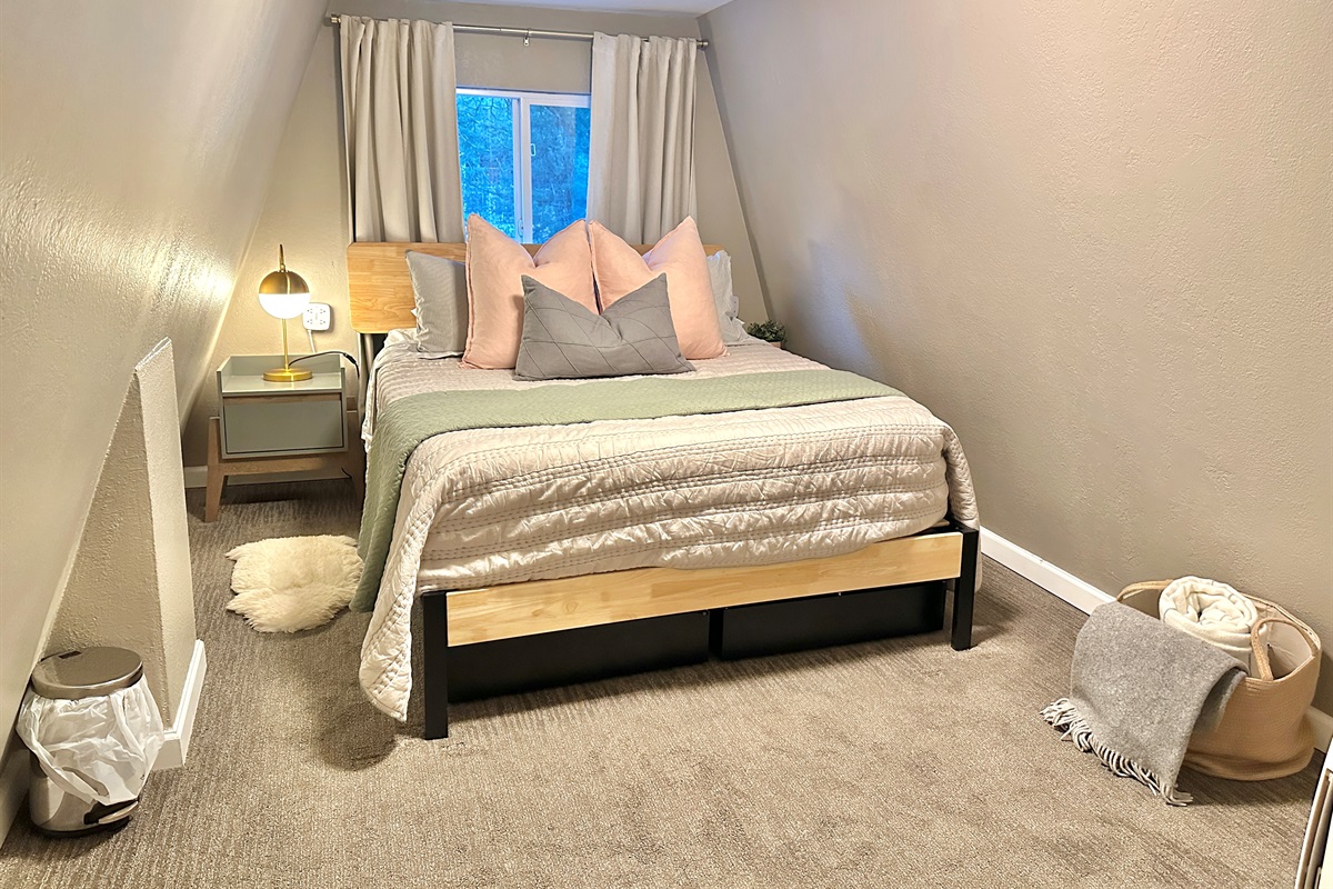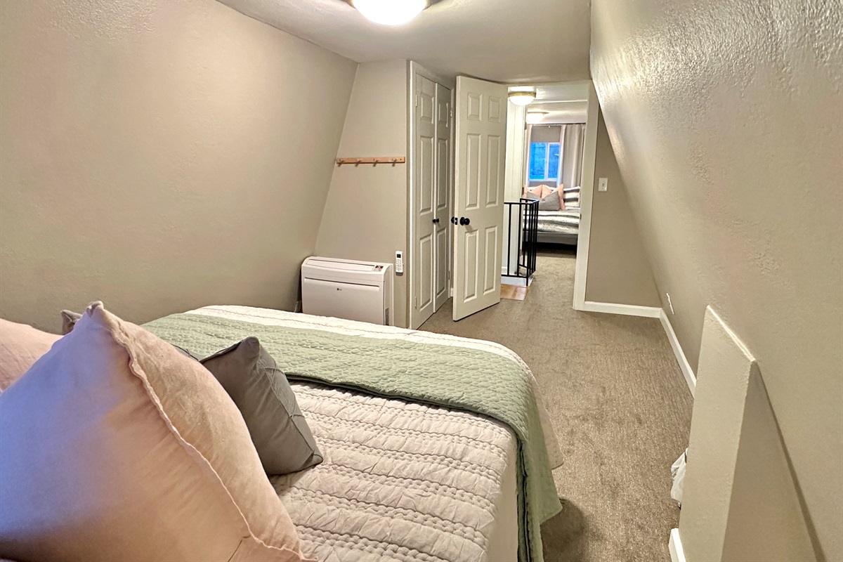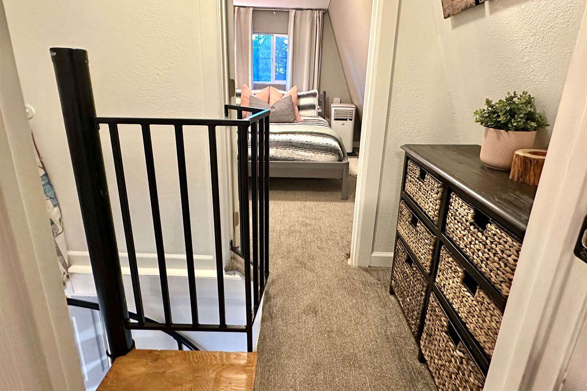 2nd level: you’ll find both bedrooms with inviting comfy queen beds and mini splits for zonal heating. Please keep in mind that there is no bathroom on the 2nd floor when considering booking, especially if traveling with children or elderly guests.